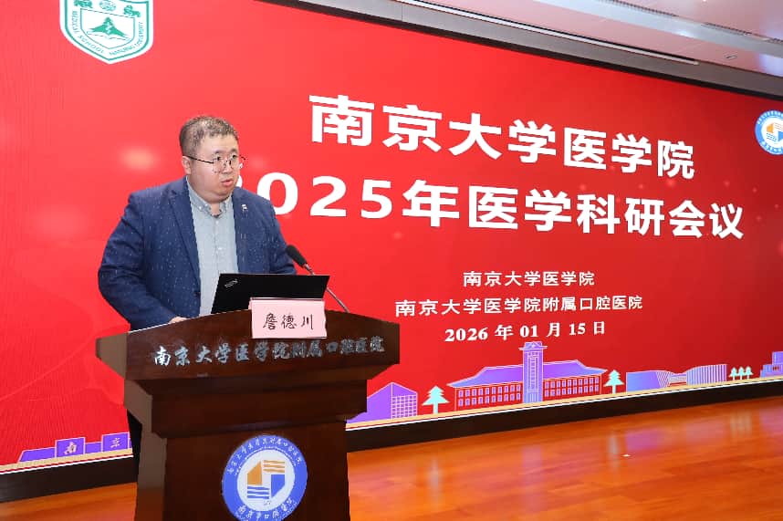 2026年1月15日,南京大学医学院2025年医学科研会议在南京大学医学院附属口腔医院隆重召开。南京大学医学院党委书记沈苏南、南京大学科学与技术研究院副院长詹德川、南京大学医学院附属口腔医院党委书记王磊出席开幕式并致辞。出席会议的还有医学院及附属口腔医院党政领导和师生员工,开幕式由医学院党委副书记、副院长蒋青主持。